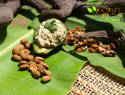 NATURE'S Almond-Pecan Pate.....Organic Raw Almonds, organic raw Pecans, Red and yellow bell peppers, portobella mushrooms, green onions, cilantro, sea salt, cayenne pepper, curry powder, fresh lemon juice, garlic |