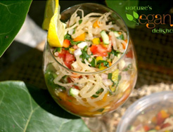 NATURE'S Sea Vegetable Salad......Irish Moss, red onions, red, yellow and orange bell peppers, organic cucumbers, kale greens, organic plum tomatoes, fresh lemon juice, organic oranges, sea salt, cayenne pepper |