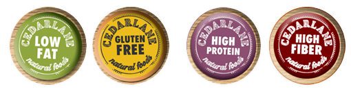 The following four dietary preferences – Low Fat, Gluten Free, High Protein and High Fiber – are indicated right on the Cedarlane box, with distinct color coding and clear labeling.