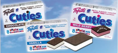 Only Tofutti Cuties have the taste and quality you expect combined with the flavor you’ve come to love. Delicious premium Tofutti stands between two chocolate wafers to prove itself the hands-down winner in milk-free frozen dessert sandwiches. Try one today…one taste will make you a believer. Tofutti Cuties come Vanilla, Chocolate, Cookies ‘N Cream, Key Lime Pie, Mint Chocolate Chip, Totally Vanilla, and Wild Berry!