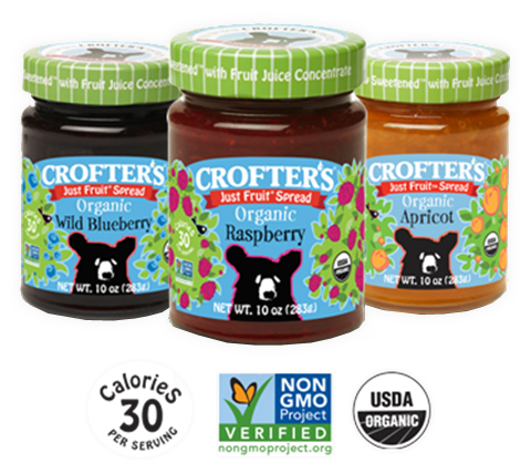 All of our Premium Spreads and Just Fruit Spreads contain one-third fewer sugars than standard fruit jam. Click here to learn more about the role of sugars in preserving fruit and why Crofter’s Fruit Spreads need to be refrigerated after opening.